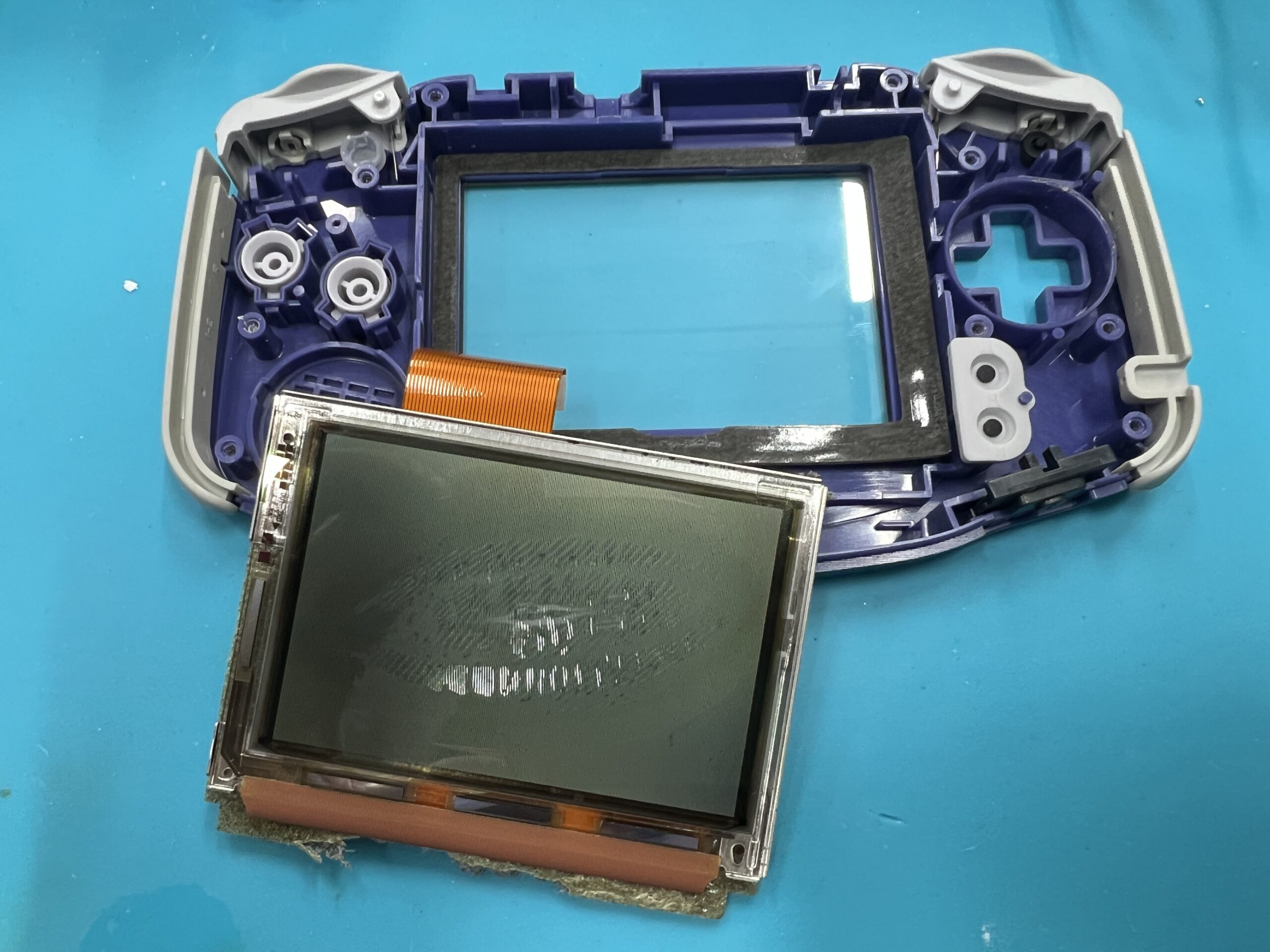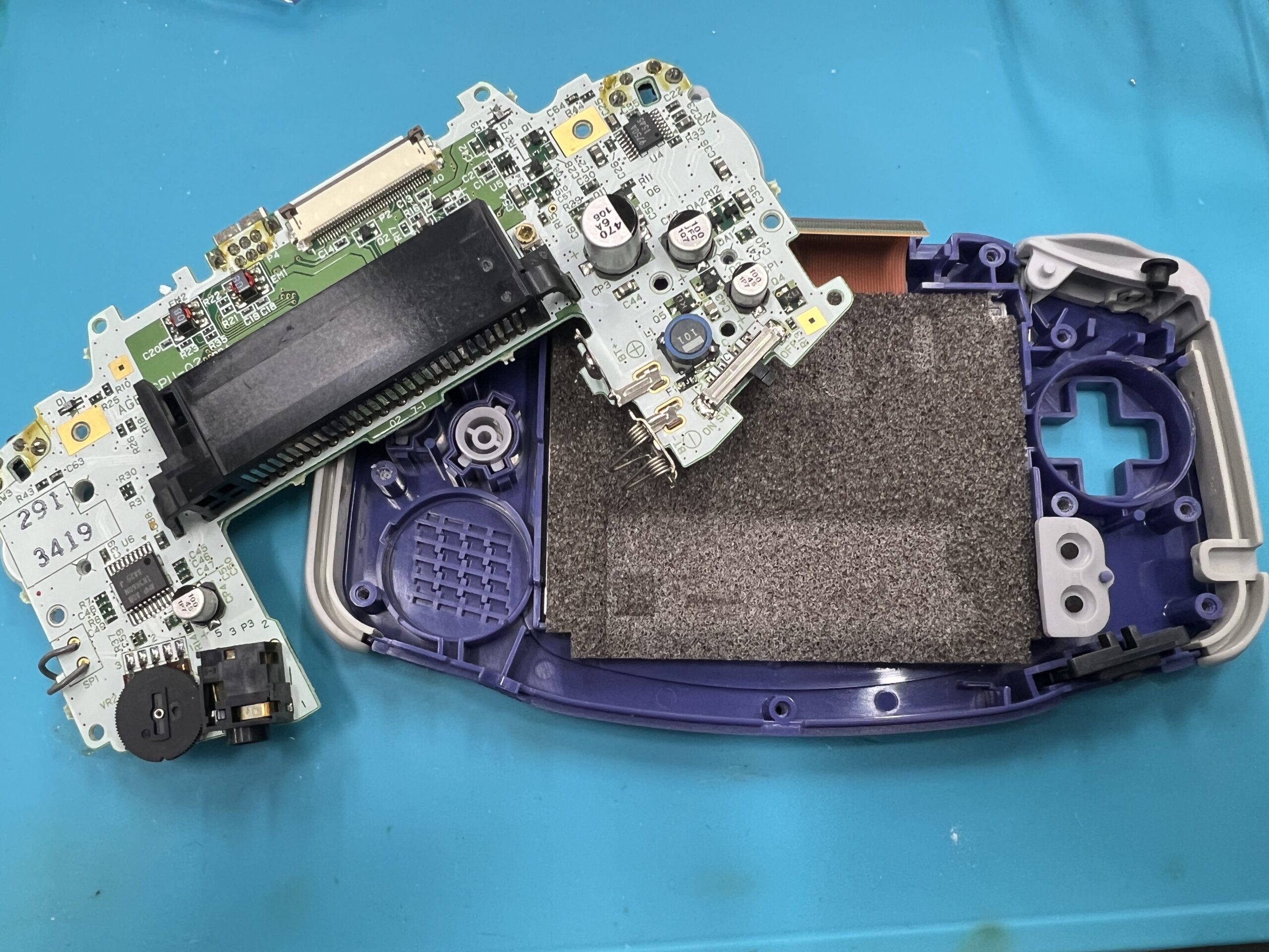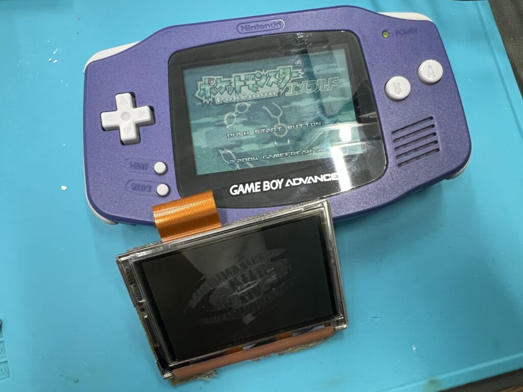 ゲームボーイアドバンス画面修理、画面が暗い、偏光板劣化(ビネガーシンドローム)ならモバイルフィクサーにお任せ下さい。