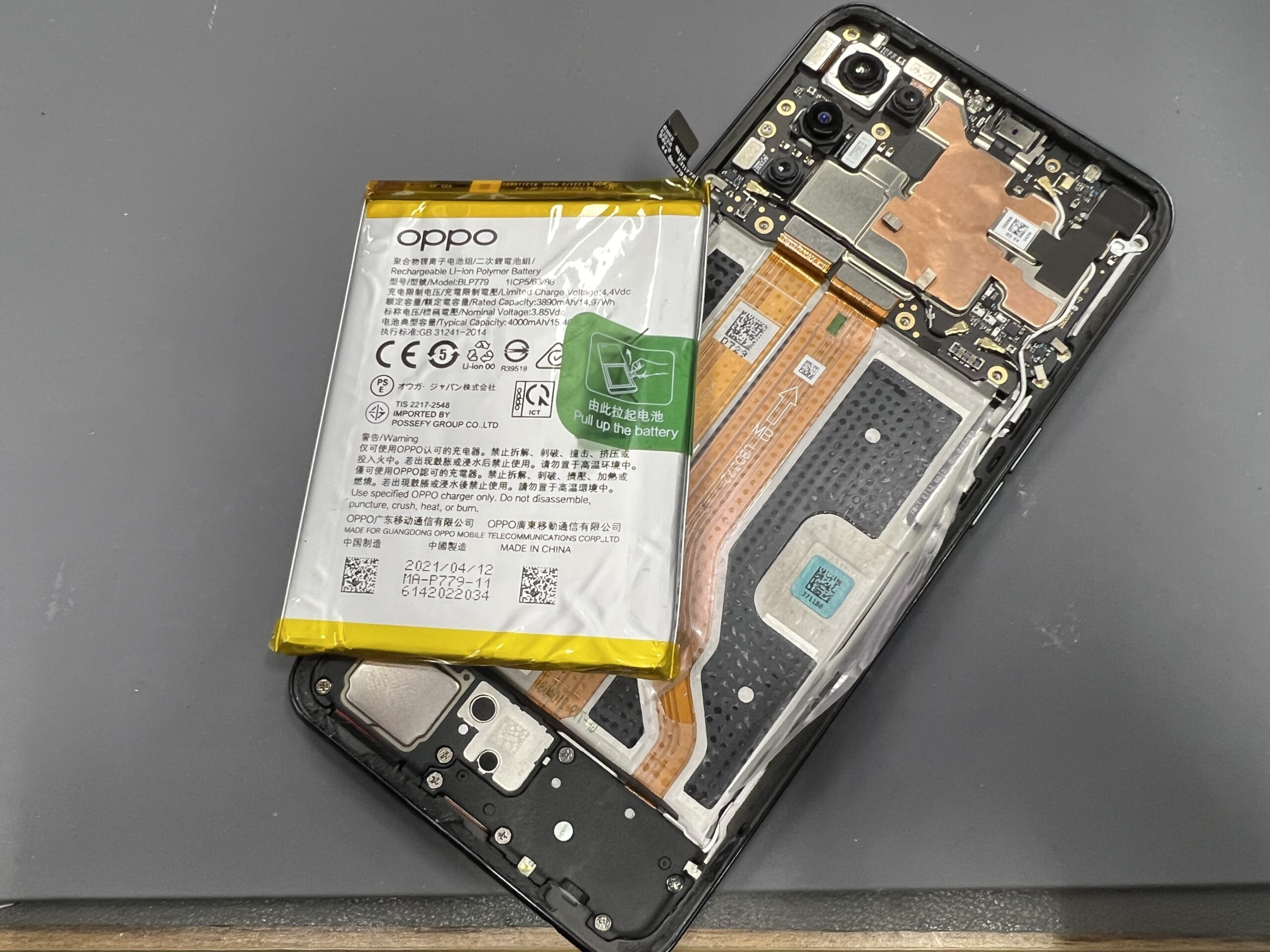 今回ご依頼相談頂きましたのは、OPPO Reno5Aバッテリー交換のご依頼です。